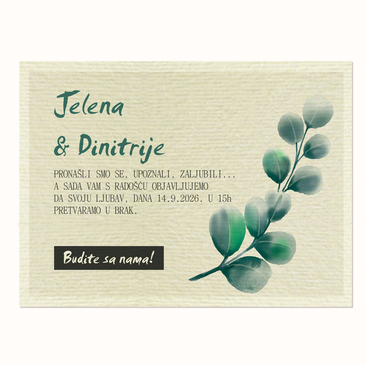 - Osim ponuđenih pozivnica u ovoj kategoriji, možete izabrati i motiv iz druge kategorije. Ako to želite, upišite koji motiv želite (ime i broj) u polje gde pišete tekst pozivnice, kao napomenu.